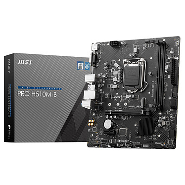 La carte mère MSI PRO H510M-B est conçue pour accueillir les processeurs Intel de 10ème génération sur socket LGA 1200. Elle permettra l'assemblage d'une configuration polyvalente et efficace capable de s'acquitter de toutes les tâches. Elle prend en charge la RAM DDR4, les cartes graphiques PCI-Express 3.0 16x, les disques SATA 6 Gb/s et M.2 PCIe 3.0 et les périphériques USB 3.0.